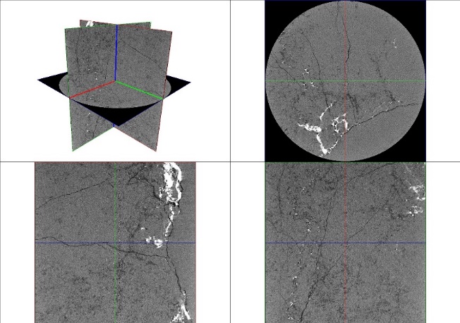 微米CT扫描实验室 一、实验室简介 本实验室隶属于西瓜视频 实验中心。主要功能是:岩石微观结构计算机断层扫描图像采集。实验室位于综合实验楼B106。 二、仪器设备 微纳米双射线管岩心CT扫描系统 仪器设备(型号):微纳米双射线管CT扫描系统V|Tome|X S180 & 240 品 牌:德国 GE 三、主要参数 (一)微纳米双射线管CT扫描系统 微纳米双射线管CT扫描系统由射线管、样品转台和探测器三大核心部分构成;根据样品尺寸调整扫描电压、电流、扫描张数、暴光时间等参数来完成样品测试。 表1. 微纳米CT基本性能参数 参数 测试范围 样品大小 1-260mm(样品直径) 扫描电压 微米管:10-240 kV 扫描电流 微米管:5-2800µA 扫描张数 1400-1800 暴光时间 500-2000ms (四)成果介绍 对扫描图像进行重构后,得到微样本三维灰度图像。 由于CT图像的灰度值反映的是岩石内部物质的相对密度,因此CT图像中明亮的部分认为是高密度物质,而深黑部分则认为是孔隙结构。通过ImageJ、AVIZO等软件对灰度图像进行区域选取、降噪处理,将图像分割与后处理可提取出孔隙结构模型、孔隙度、孔隙半径、喉道半径、配位数等参数。 某样品微米CT扫描图像 某样品微米CT扫描剖面图(三维切片,俯视图、XZ方向、YX方向) 某样品二值分割图像(黑色-孔隙;白色-颗粒) 某样品三维孔隙网络模型 某样品孔喉结构特征 四、实验室责任人 韩登林 联系电话:18601309981 五、实验预约流程 需与实验室责任人确定样品类型、数量、测试时间后,下载填写“分析测试申请表”,在开展实验当天提交纸质申请表。样品要求:圆柱状岩石样品,规格2.5cm(φ)*4cm(L)。