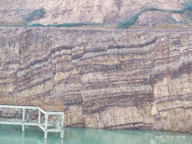 (2)建成5沉积观察点40-图41:以知音湖为考察对象,建立现代湖泊的沉积环境、沉积特征、沉积类型及成因等方面的总体认识,作为公众湖泊观察点;以汉江江滩为研究对象建立与河流相关内容结合的河流观察点。满足公众对沉积环境、沉积结构和沉积相分析的认识,让公众了解沉积环境、沉积结构和沉积相的相关知识