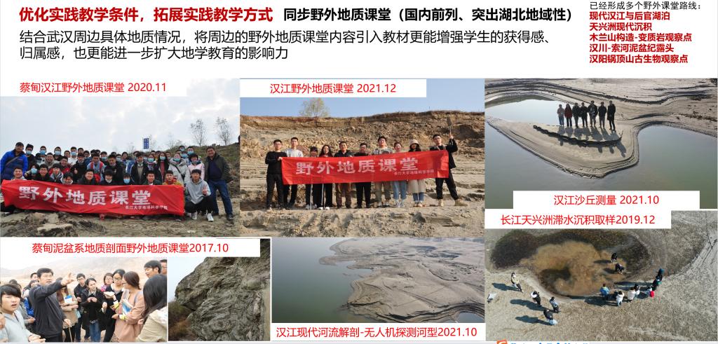 依托蔡甸周边已建立的观察点已为本校学生提供相关的课间野外实践服务,并多次接待社会各界领导、专家参观、指导。同时,增加社会服务及社会公益等方面影响力,丰富武汉市爱好人员地质知识。蔡甸周边地质观察点是“中国地层标本长廊”服务范围的有效拓展。