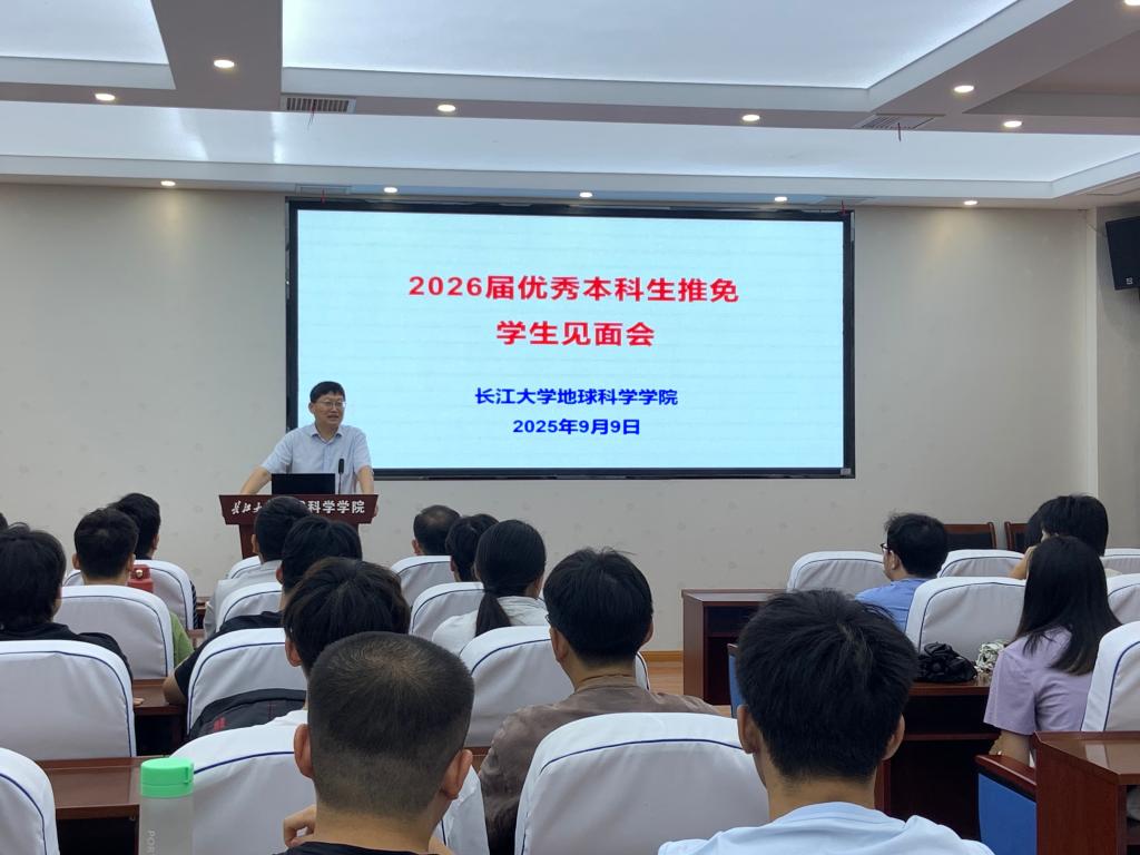 在石油科技大楼C301会议室召开2026届优秀本科生推免学生见面会,学院推免工作材料审核小组和所有报名推免的同学参会。会议由副院长胡忠贵主持,院长朱光有代表学院推免工作小组和同学们进行了交流。