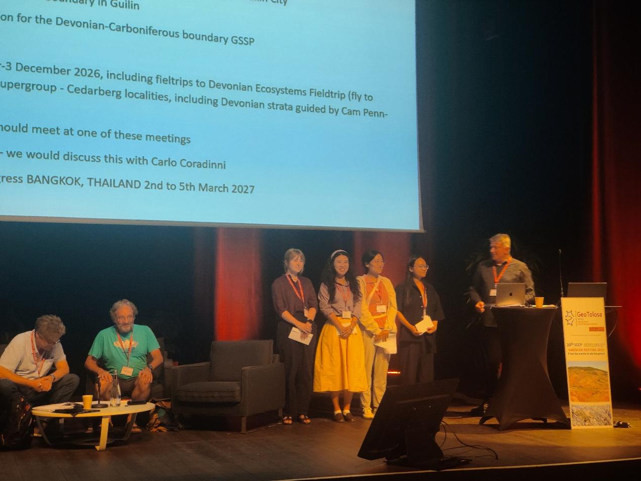尹家一特任副教授应邀参会,获得国际泥盆纪地层委员会颁发的青年科研资助;并当选国际泥盆纪地层分会通讯委员;受邀在大会上作学术报告,受到与会专家关注。