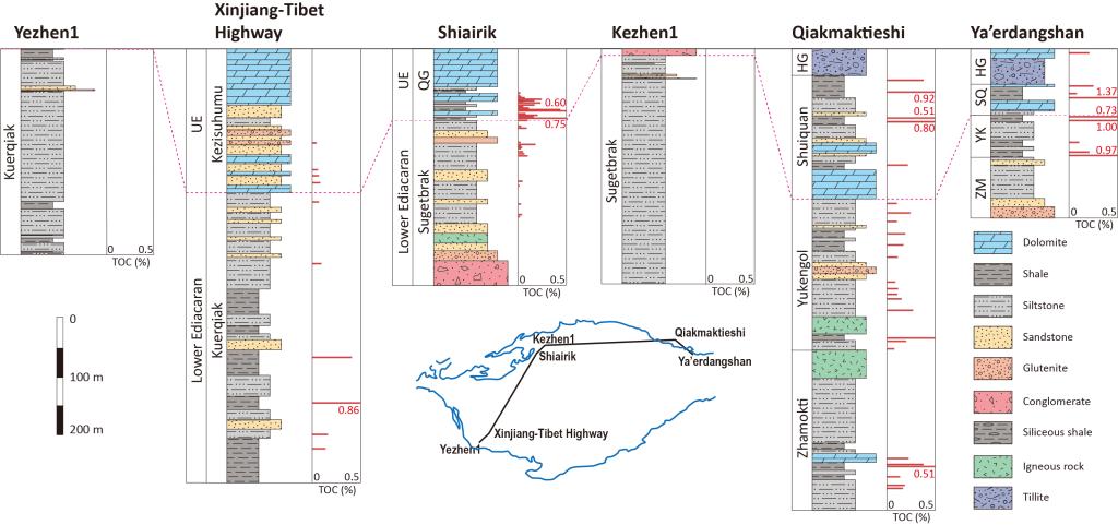 图4 塔里木盆地埃迪卡拉纪烃源岩中的总有机碳(TOC)含量