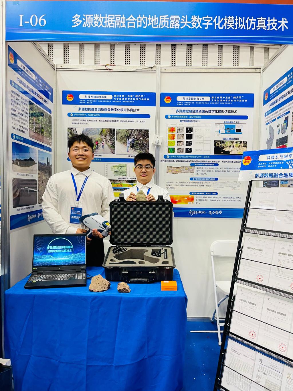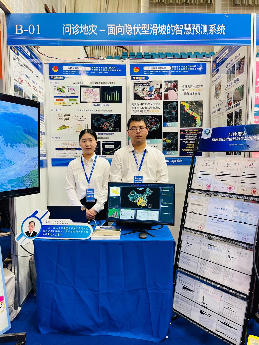 一等奖项目“问诊地灾——面向隐伏型滑坡的智慧预测系统”由大四学生焦梦洁担任负责人,温韬、尚成、张勃成三位老师指导。项目直面隐伏型滑坡识别预测的世界性难题,创新提出“强水弱岩(土)”机理,运用“物理+数据”双驱动模型将预测精度显著提升14.07%,获得夏军院士、陈宁生教授、唐辉明教授等专家推荐。二等奖项目是由研二学生吴湘负责,胡忠贵、邵燕林、高达老师共同指导的“多数据融合的地质露头数字模拟仿真技术”,聚焦地质露头数字化保护与重建,自主研发程序融合激光点云、无人机摄影等多源数据,实现高精度三维建模与岩相识别,在油气勘探等领域应用前景广阔。三等奖项目“深地透视:基于成岩压实模拟的万米油气藏智能预测系统”由大三学生孙雨楠负责,朱光有和栾国强两位老师指导,聚焦深层油气,打造国之重器。