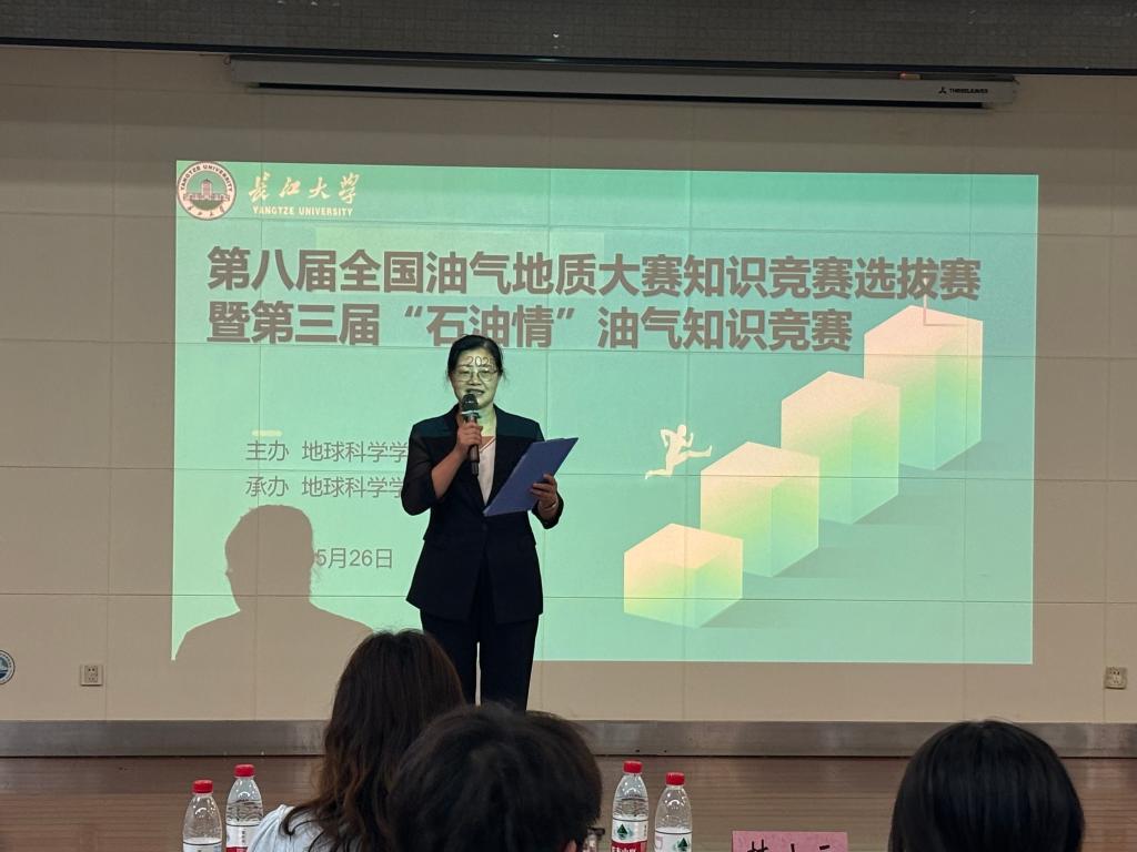 比赛伊始,各参赛队伍依次进行自我介绍。胡忠贵副院长致开幕词,他表示此次活动不仅仅是一场知识的较量,更是一次石油精神的传承,希望同学们赛出风采,提升能力,期待同学们在第八届全国油气地质大赛知识竞赛总决赛的精彩表现。
