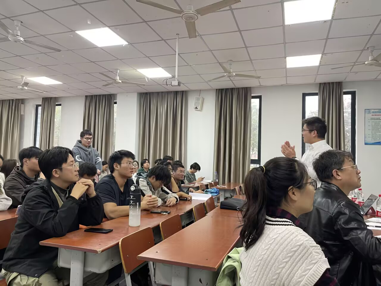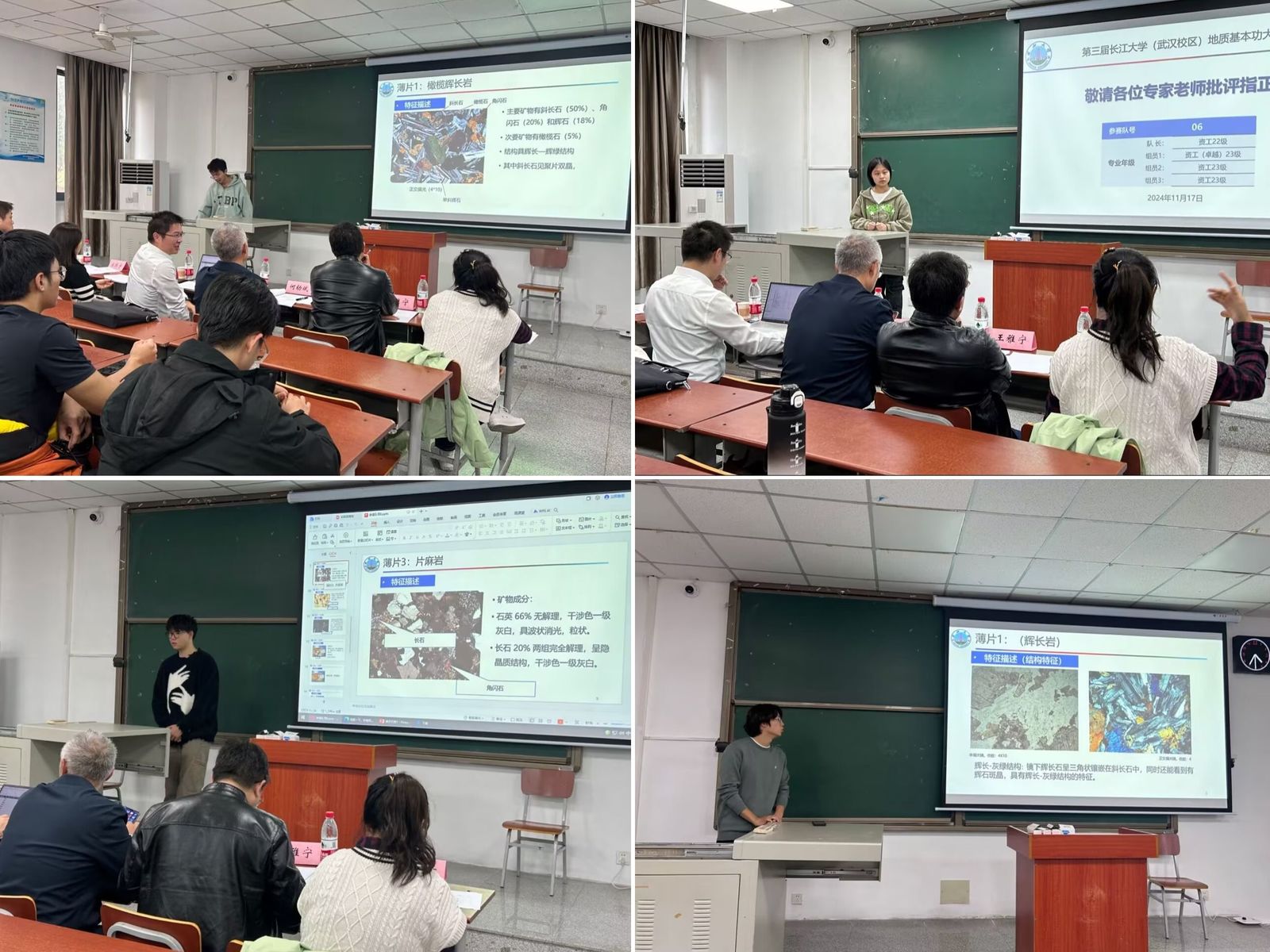 (武汉校区)地质基本功竞赛决赛在武教A109顺利举行。同学们将地质标本鉴定成果以多媒体的形式,向评委老师和全体观众展示汇报,评委老师现场提问点评。现场热闹非凡、掌声雷动。