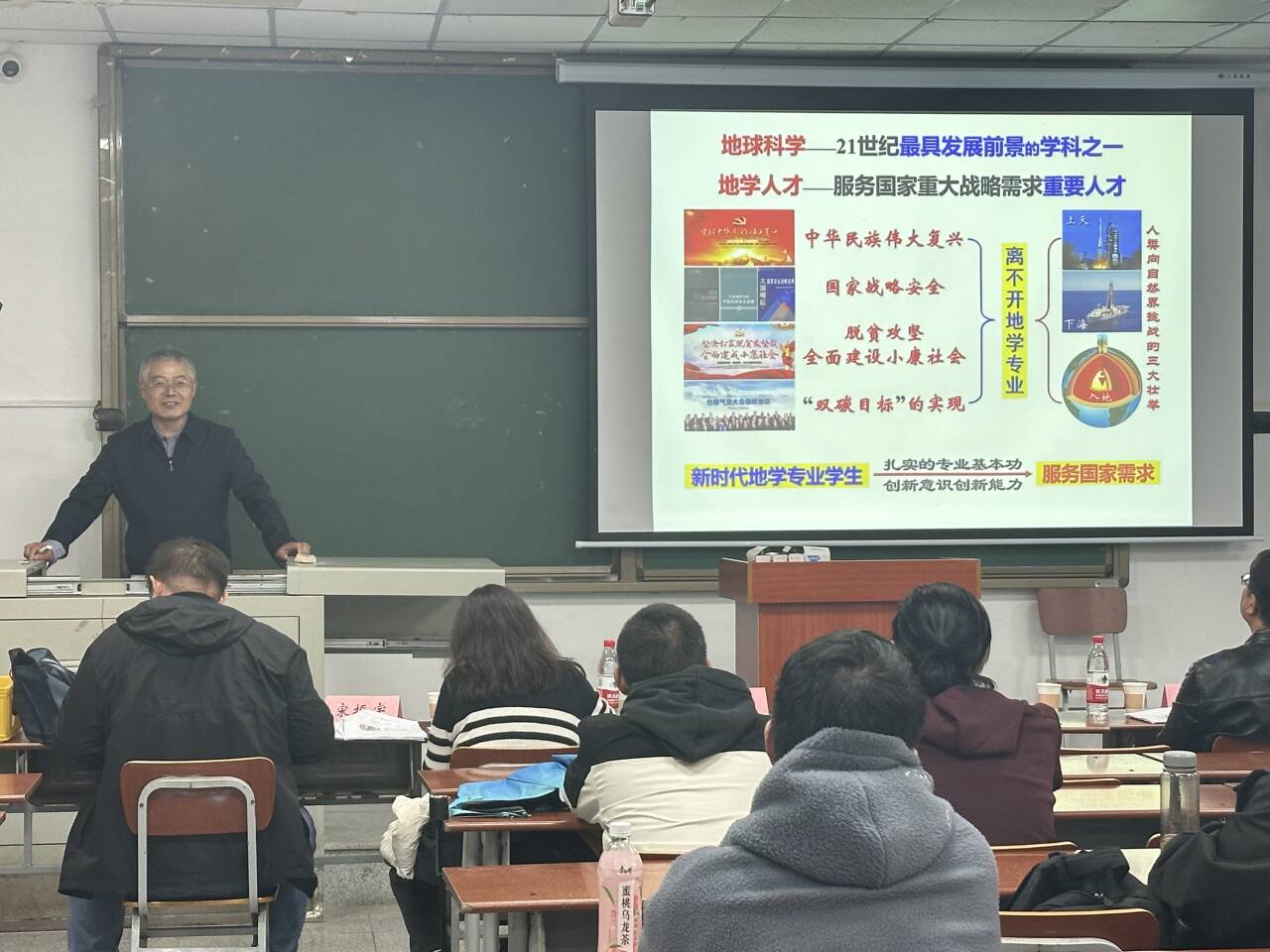 评委代表何幼斌教授最后做总结致辞,他对同学们在活动中的精彩表现赞不绝口,同时对本次活动的圆满成功表示衷心祝贺。何教授满怀激动地说:“地球科学是 21 世纪极具前景的学科,地学人才对国家战略意义重大。大家要以扎实基本功、创新意识和能力,争做服务国家的地学人才。”同学们听后深受触动,纷纷报以热烈的掌声。