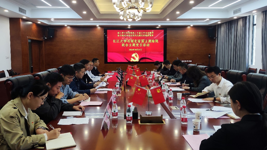 与湖北省国土测绘院开展主题学习。地信系教工党支部书记邵燕林带领全体党员重温入党誓词,领学了习近平总书记在党的二十届三中全会第二次全体会议上的讲话,并联系西瓜视频