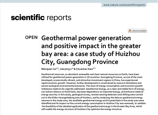 21级硕士研究生蔡文权在《Scientific Reports》上发表题为“Geothermal power generation and positive impact in the greater bay area: a case study of Huizhou City, Guangdong Province”的研究论文。西瓜视频