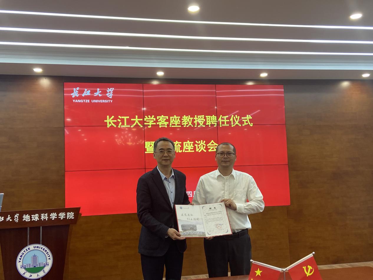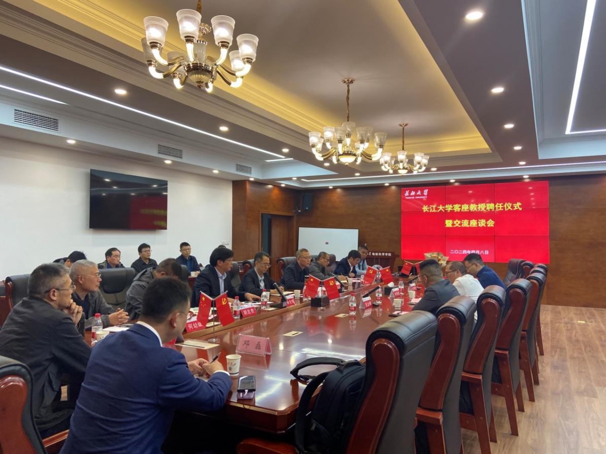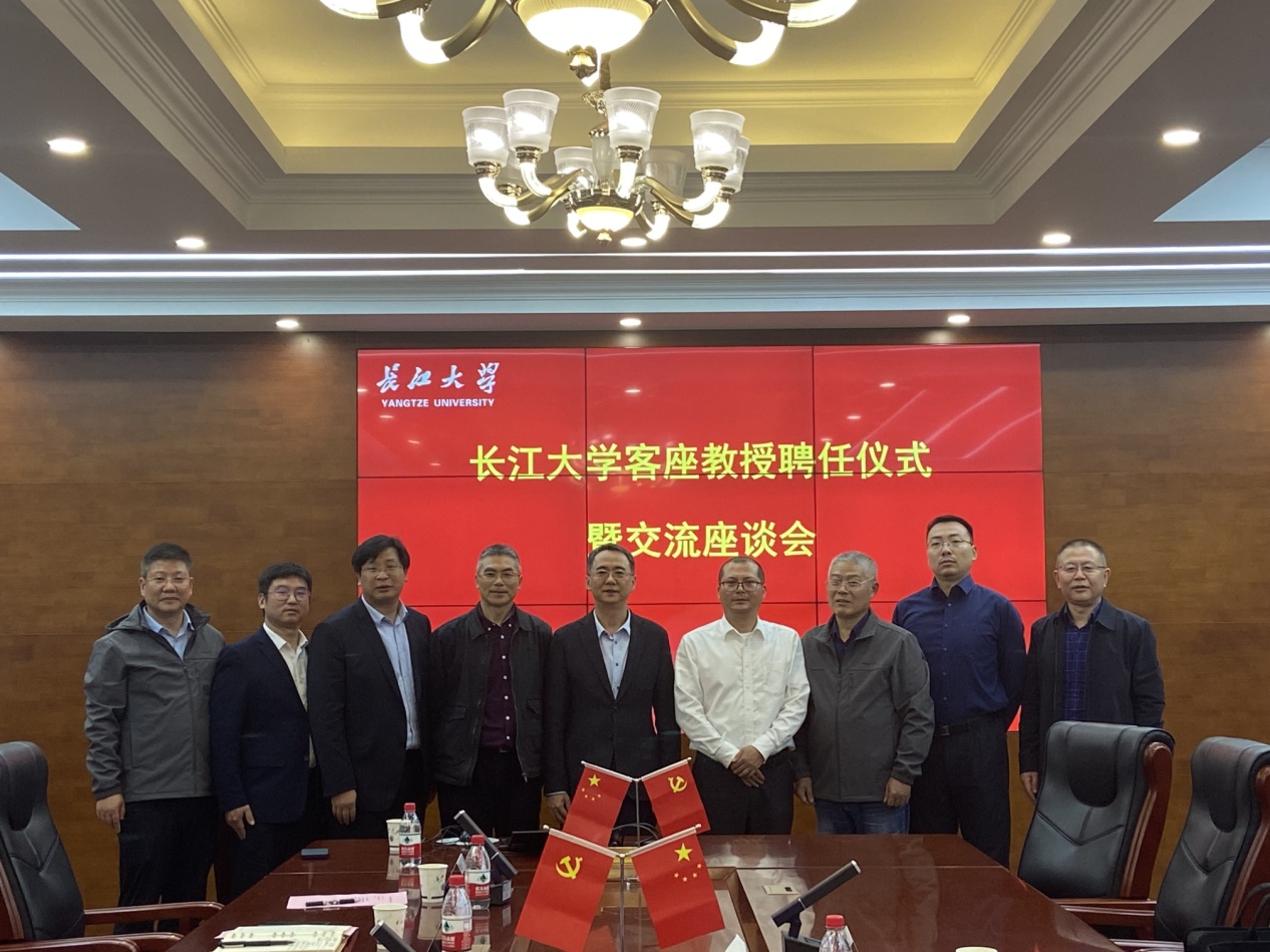 报告结束后,学校在石油科技大楼C201会议室举行了客座教授聘任仪式暨交流座谈会,校党委书记王建平给肖明国颁发客座教授聘书,并代表学校向他对母校的支持表示感谢,校企双方就学科建设、科学研究、人才培养和学生就业等问题进行了深入交流。