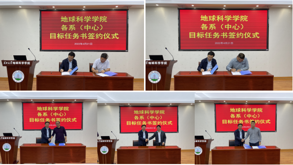 地质系、石油系、地信系、地科系、实验中心主任分别与胡明毅院长签订了2022年目标任务书,立下了军令状,各系(中心)主任纷纷表示将责任牢牢扛在肩上,狠抓落实,责任到人,攻坚克难,不负众望。