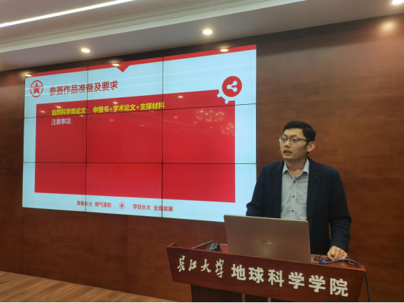交流会上,信晓阳首先从“挑战杯”大学生创新创业竞赛在助力人才培养和提升学校综合实力等方面,强调了此项赛事的重要性;其次,详细地介绍了此赛事具体的参赛资格、作品申报的时间及流程和参赛作品准备的具体要求;最后,向大家展示了往届国赛优秀作品。