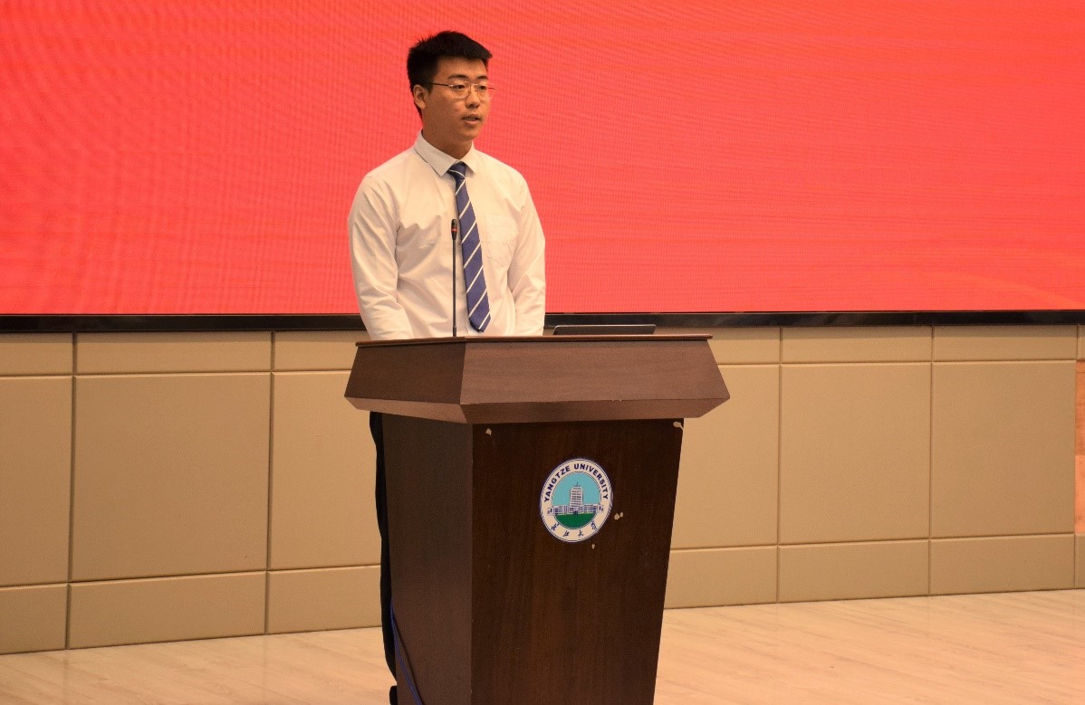 ,学院所获得的各项荣誉。并寄语同学们三点希望:树立远大的目标,做好自己三年研究生生活的规划,激发出学习动力;加强动手和创新能力的培养,在解决问题的过程中提升个人能力,做一个高情商、高智商的人;要有团队协作精神,互相学习、配合,成果国家的栋梁之才。最后,胡院长希望同学们能够不忘初心,牢记使命,在地科院创造出美好的未来。