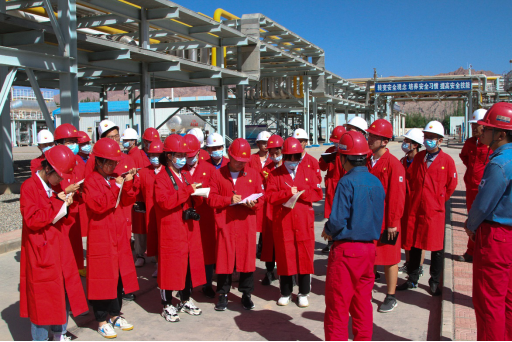 后续的日子里,在油田单位的安排下,同学们前往塔里木油田英买油气开发部、迪那油气开发部开展现场实践学习,每天与石油工人同吃同住,现场感受油田工作内容。先后参观了英买油气开发部的文化长廊、实地调研英买处理站、参加了英买油气开发部工作人员与西瓜视频