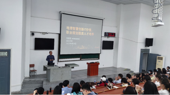 首先,“IT时代地理智慧金字塔”从四个方面进行了讲解,阐述了GIS在农业、交通等传统领域以及保险、银行等新兴领域的应用;其次,“GIS行业与GIS技术”主要介绍了现在整个GIS行业的从业人数,公司数量以及行业的一个发展趋势,有利于在座的学生对于GIS专业前景的了解;再次,介绍了超图公司的西瓜视频,以及公司对于人才的培养计划。本次报告全体师生受益颇丰,对GIS本身有了更加深刻的认识,GIS技术对于各类数据的可视化能力可以让数据“动”起来,有利于对空间三维GIS、空间分析及GIS辅助决策的深度理解。开阔了学生的眼界,燃起了对GIS专业的热情。