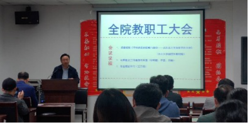 在石油科技大楼C201会议室召开全体教职工会议,全院108名教职工参加,会议由党委书记江万哲主持。