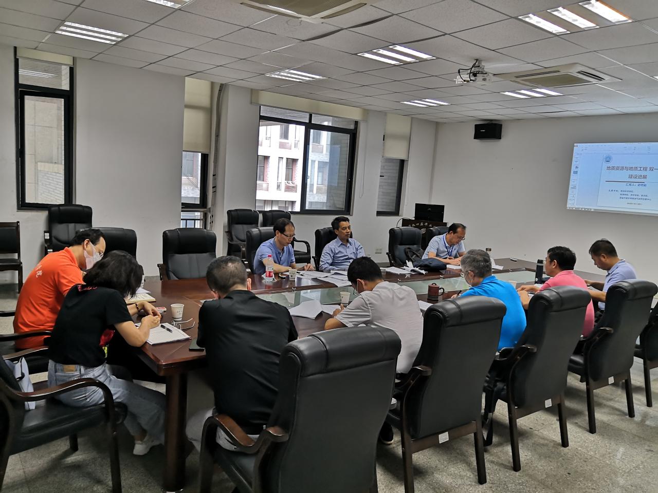 副院长吴楠、副书记任倩、学科建设负责人何幼斌教授、学科秘书韩登林教授。会议由地质资源与地质工程学科负责人胡明毅教授主持。