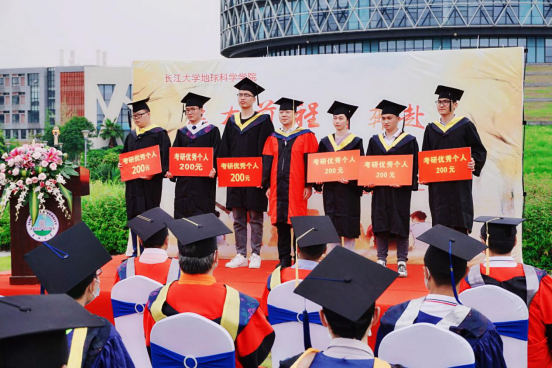 “本届毕业生取得了升学率38%,126人读研的亮眼成绩。”在吴楠副院长宣读表彰决定后,考研先进集体、寝室、个人的领奖代表依次上台。这一环节无疑掀起了典礼的首个高潮,观众忍不住举起手机,起身拍照点赞。