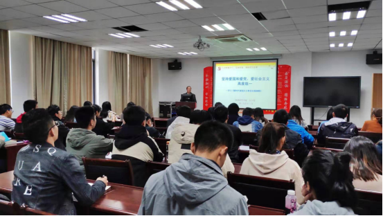 会议伊始,江万哲书记作主题为《坚持爱国和爱党、爱社会主义高度统一》的党课报告。“爱国主义是中华儿女最自然、最朴素的情感,是中华民族精神的核心。爱国主义的本质就是坚持爱国和爱党、爱社会主义高度统一。”江书记强调在新时代的格局下,青年人们应该胸怀新使命和新担当。结合时下社会热议的香港问题、中美贸易问题,江书记提出青年人是社会主义建设者和接班人,应当坚持在党的领导下,树立远大理想和立家国情怀,勇于担当,砥砺奋斗,为实现中华民族伟大复兴的中国梦,为推动“一带一路”建设,为构建人类命运共同体的伟大实践担负起时代和人民赋予的责任和使命,永续奋斗。