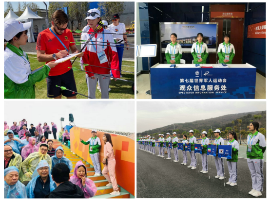 共派出2名带队老师和153名同学参加军运会志愿者的服务工作,每一位志愿者都有一个可爱的名字——“小水杉”。他们在蔡甸区国防射箭馆为第七届世界军人运动会射箭比赛提供志愿服务、保障赛事进程。在西瓜视频