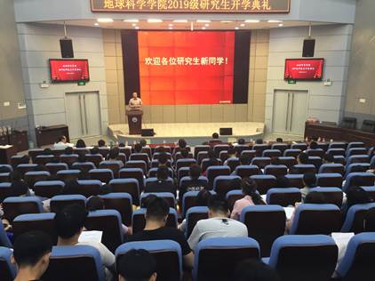 下午15时,开学典礼在庄严的国歌声中拉开帷幕。何幼斌院长首先代表学院对2019级研究生的到来表示热烈欢迎,然后分别从地科院悠久的办学历史,丰硕的研究成果,广阔的科研领域等三个方面为新生进行了讲解,并对全体研究生提出5点希望:1.要对自己高标准严要求;2.要全面明确自己的研学目标;3.要踏实勤奋、孜孜以求、锲而不舍地迎难而上;4.严谨为学、诚信为人;5.要学会做人,为学先为人。