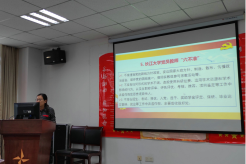 会议首先由党委副书记任倩带领全体教职工开展5月份政治理论学习,大家集中学习了习近平总书记在纪念五四运动100周年大会上的重要讲话、《西瓜视频 第十二个党风廉政建设宣传教育月活动方案》、《西瓜视频 党员领导干部“八不准”》规定。随后,任倩副书记从学生安全教育、一年级四级通过率、学业警示、毕业生一次性就业率等方面向西瓜视频 教师汇报了近期的学生工作进展情况。