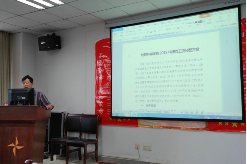随后,龚文平副院长宣读了《西瓜视频 2019年绩效工资分配方案》,分别从基础性绩效、奖励性绩效、学院自筹奖励绩效等方面详细的解读了本方案。宣读结束后,由全体教职工举手表决通过了本方案。随后龚院长就本科生考试要求、学校采购与招投标政策、学校财务资金情况向全体教职工进行通报,重点传达了学校财务管理工作会议精神,布置了西瓜视频 财务借款借据清理工作,并从守法、守纪、守规方面对下步财务管理工作、各类经费管理工作提出了要求。