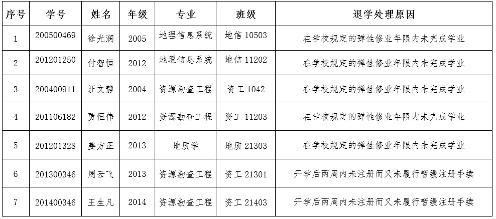 普通本科生学籍管理办法》(长大校发〔2017〕134号)第五十一条规定,对达到退学处理条件但拒绝办理退学手续或多种方式均无法联系到本人的本科生,现以公告方式送达拟退学处理告知书,公告时间7个工作日,于2021年6月2日结束公告。在公告期内,学生可向学院提出申辩和书面陈述并署真实姓名、联系方式,邮寄或直接送到西瓜视频