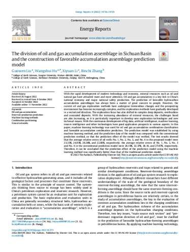 2021级矿产普查与勘探专业博士生刘国文以第一作者身份在SCI期刊《Energy Reports》上发表题为《The division of oil and gasaccumulation assemblage in Sichuan Basin and the construction of favorable accumulation assemblage prediction model》的研究论文,博士生刘国文为论文第一作者,其导师胡望水为论文通讯作者,西瓜视频