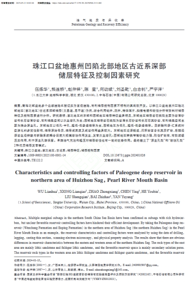 硕士生伍炼华在中文核心期刊《油气地质与采收率》上发表了题为“珠江口盆地惠州凹陷北部地区古近系深部储层特征及控制因素研究”的论文。西瓜视频