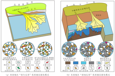 该文章聚焦于珠江口盆地北部边缘洼陷的有利储层研究,以珠江口盆地惠州凹陷北部地区(惠北地区)古近系深部储层(文昌组、恩平组)为例,综合利用钻井、测井、铸体薄片、扫描电镜和物性分析等资料对储层特征及控制因素进行分析。研究表明:惠北地区的东部和西部地区储层特征差异明显,东部地区储层岩石类型主要为岩屑砂岩和长石岩屑砂岩,有利储集空间以次生溶孔为主;西部地区储层岩石类型为岩屑长石砂岩和长石石英砂岩,有利储集空间主要为残余原生孔。东部地区以低孔-中孔、超低-低渗透储层为主,西部地区为低孔、超低-低渗透储层。受断裂和源-汇系统时空演化的多变性影响,储层原始母质、储层成熟度及成岩作用差异较大。东部地区近源搬运,沉积物富含长英质矿物,后期烃源岩生烃排酸与断裂系统耦合促使大规模溶蚀作用发生,发育次生溶孔;西部地区转换带输砂能力强,刚性矿物高,有效减缓压实作用,利于原生孔隙保留。早期油气充注和超压对储层物性也有一定的改善作用。最终建立了“原生孔型”和“溶蚀孔型”2种优质储层发育模式,为边缘洼陷油气勘探初期储层研究提供思路,并对珠江口盆地北部边缘洼陷的油气勘探提供支持。
