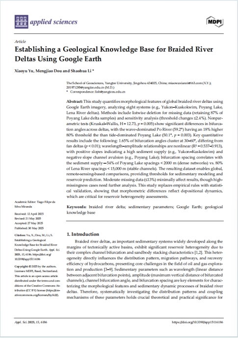 硕士研究生於筱雨在《Applied Science》上发表题为“Establishing a Geological Knowledge Base for Braided River Deltas Using Google Earth”的论文,西瓜视频