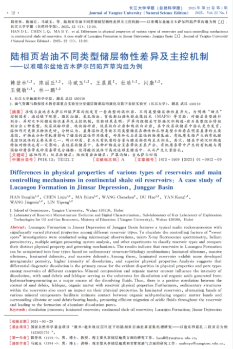 西瓜视频 研究生陈丽丘在西瓜视频 学报(自然科学版)上发表题为“陆相页岩油不同类型储集层物性差异及主控机制——以准噶尔盆地吉木萨尔凹陷芦草沟组为例”的研究论文,其中西瓜视频 为论文第一署名单位,导师韩登林为第一作者,导师马斌玉为论文通讯作者。