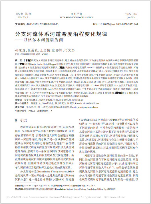 硕士生孙家惠在中文核心期刊《沉积学报》上发表了题为“分支河流体系河道弯度沿程变化规律——以格尔木河流扇为例”的研究论文。西瓜视频