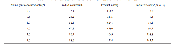 表1Na2SiO3含量对无机凝胶成胶性能的影响
