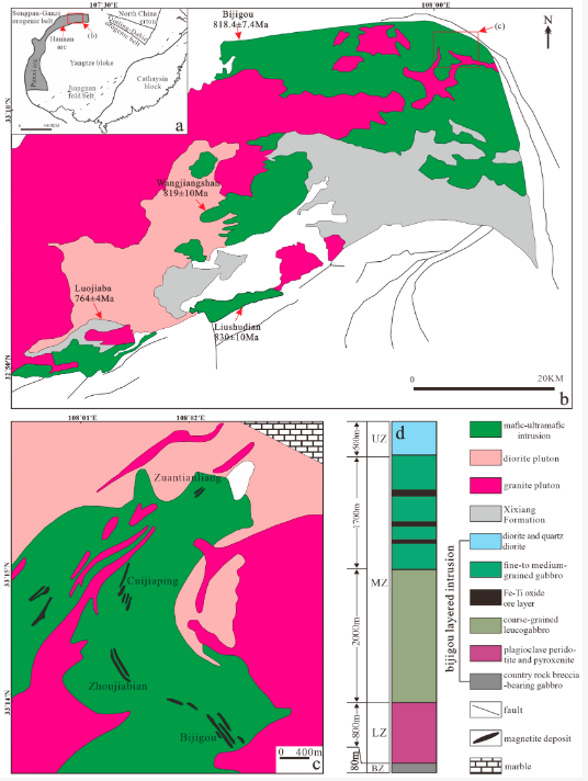 该研究针对毕机沟岩体中角闪石与尖晶石后成合晶及角闪石与斜长石后成合晶的成因为研究对象,通过岩相学分析、矿物微区成分、结晶学特征等研究方法,对毕机沟岩体中后成合晶的成因及钒钛磁铁矿矿床成因提供启示。