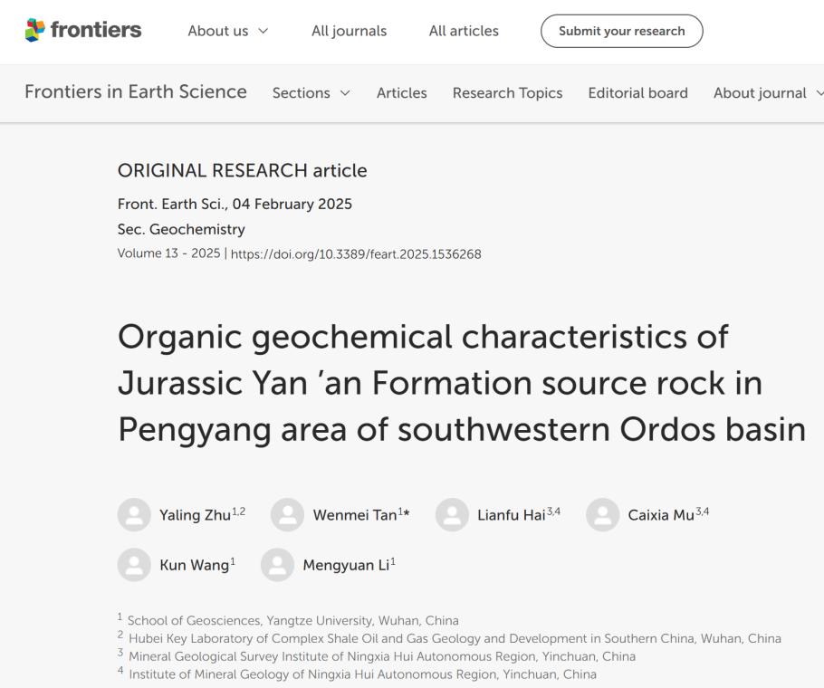 教师朱亚玲在SCI收录期刊《Frontiers in Earth Science》上发表题为“Organicgeochemical characteristicsofJurassicYan’anFormationsourcerockinPengyangareaofsouthwestern Ordosbasin”的研究论文,西瓜视频