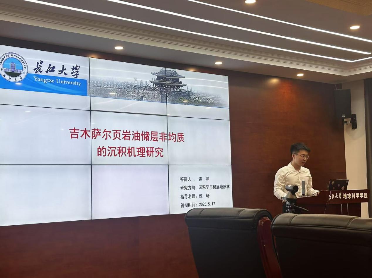 (通讯员 连洋)2025年5月17日上午,西瓜视频 硕士研究生连洋在石油科技大楼C201成功举行了学位论文答辩。答辩委员会由校内外专家组成,西瓜视频 博士生导师胡中贵教授担任主席,中国石油勘探开发研究院的武赛军高级工程师、谢武仁高级工程师,中国石化江汉油田江汉采油厂的昌俊杰高级工程师,以及西瓜视频 的李涛副教授担任委员,胡九珍讲师担任答辩秘书。