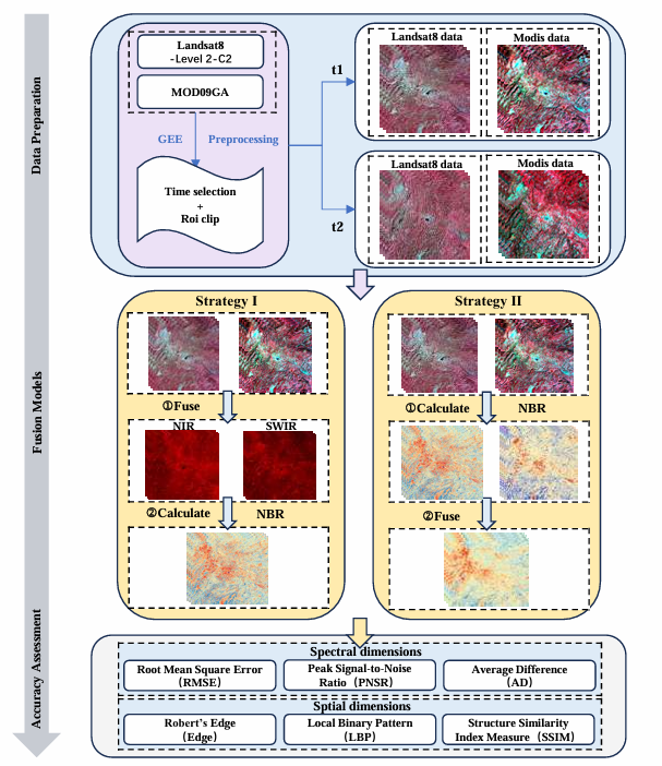 在本研究中,我们首次系统地验证了基于NBR的喀斯特地貌火烧迹地提取的时空融合技术,解决了破碎地貌中地形耦合火灾模式所带来的独特挑战。我们以云贵高原过渡带为研究对象,综合评估了三种融合模型(STARFM、STDFA和FSDAF)在植被监测中的应用,并将灾后火痕提取的响应时间控制在1天以内。