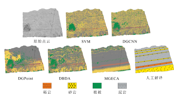 该论文聚焦露头点云语义分割任务中,存在点云密度分布不均和单点反射率可分离性有限的问题。为高效准确地实现露头点云岩性分割,提出一种基于露头体素多特征值的高效通道注意力机制的岩性分割方法(MGECA)。所提方法首先对原始点云进行体素化,并计算各体素的空间-光谱特征参数。然后使用多粒度卷积神经网络进行多尺寸特征融合。接着使用高效通道注意力机制(ECA)改进经典Transformer中的自注意力机制,对编码后的特征图进行加权,以便模型能建立空间和光谱信息的全局关联。最后设计双通道分组卷积衔接卷积神经网络和ECA,实现空间光谱特征整合并降低计算复杂度。实验结果表明,MGECA在月牙湾激光露头点云数据集上的岩性识别总体准确率达到90.6%,平均交并比达到70.4%,相较于DGPoint模型分别提高31.7百分点和24.7百分点。结果表明,所提方法在露头点云场景中的分割效果与现有方法相比具有比较明显的优势。