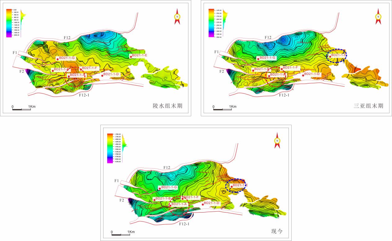 图2 宝岛凹陷北部断阶带圈闭演化图
