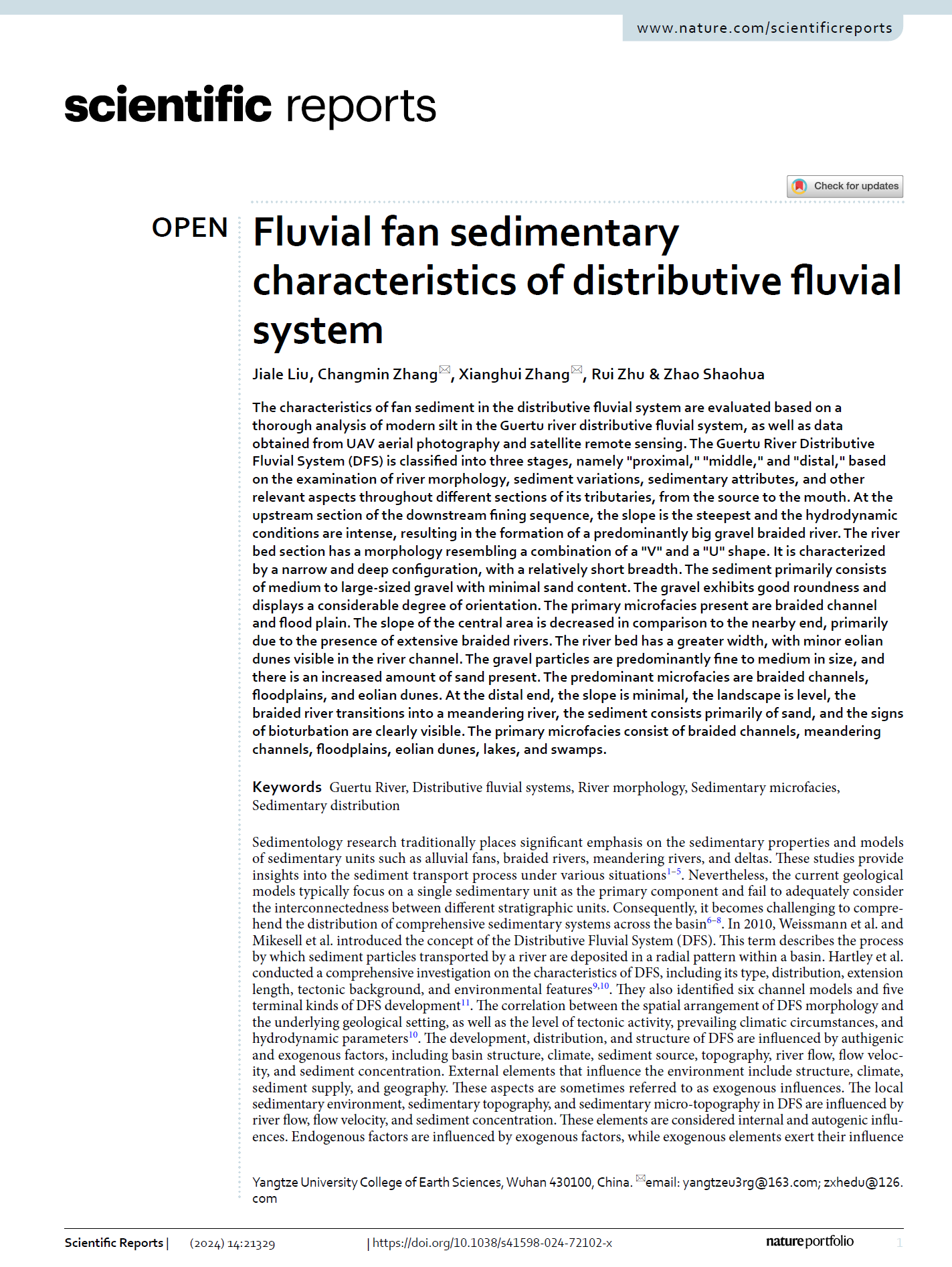 博士生刘家乐在期刊《scientific reports》上发表题为“Fluvial fan sedimentary characteristics of distributive fluvial system”的研究论文。西瓜视频