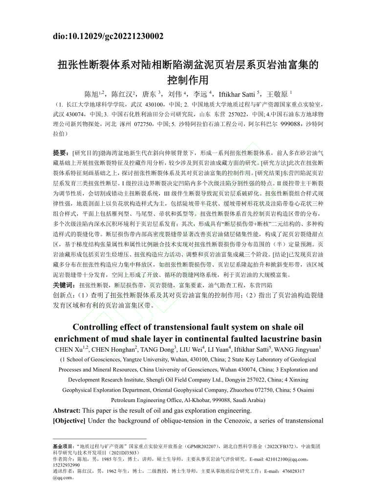 西瓜视频 陈旭副教授以第一作者身份在《中国地质》权威期刊上发表题为“扭张性断裂体系对陆相断陷湖盆泥页岩层系页岩油富集的控制作用”的研究论文,该项研究得到了湖北省自然科学基金的资助。