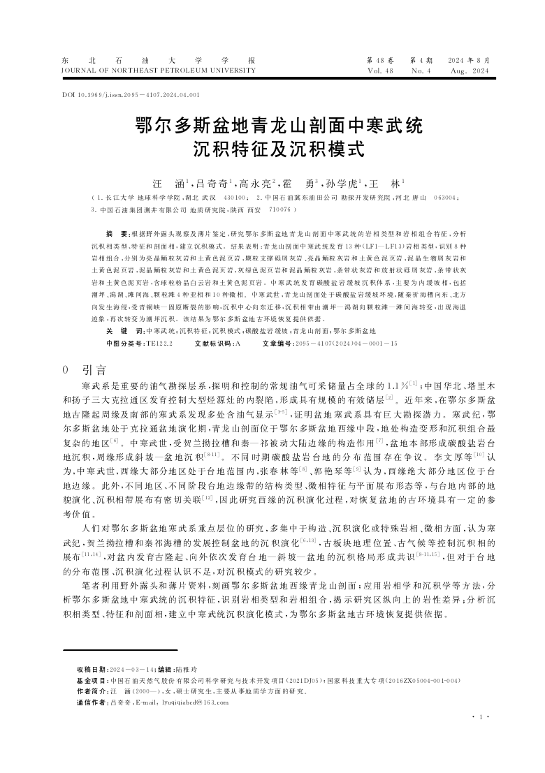 22级硕士研究生汪涵在期刊《东北石油大学学报》上发表题为“鄂尔多斯盆地青龙山剖面中寒武统沉积特征及沉积模式”的研究论文。西瓜视频