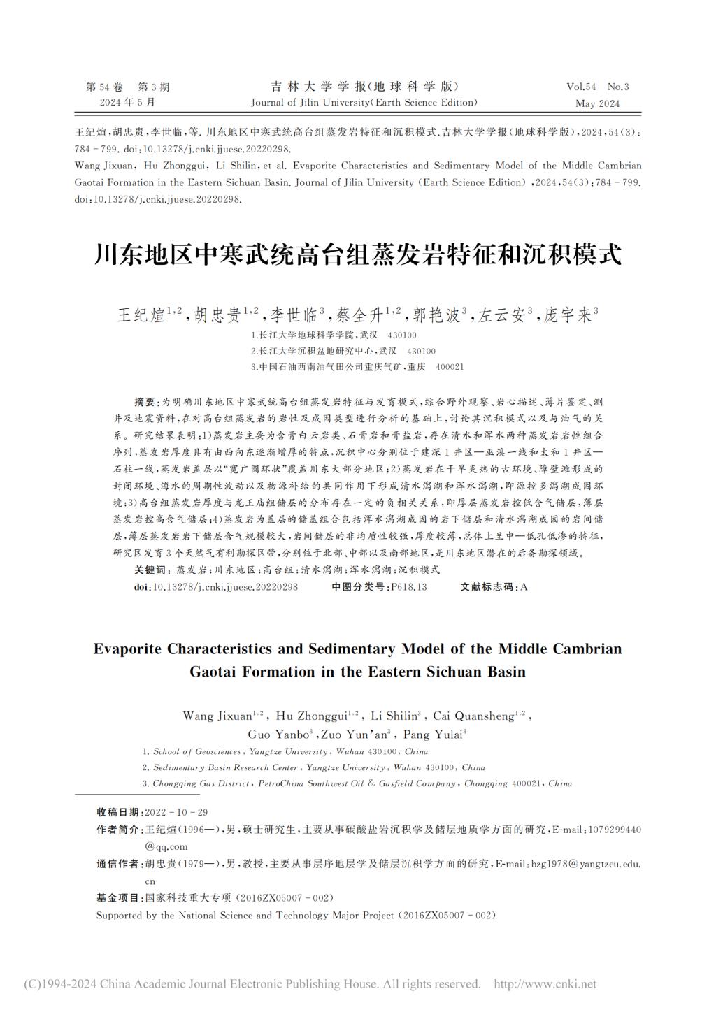西瓜视频 20级硕士研究生王纪煊在期刊《吉林大学学报(地球科学版)》上发表题为“川东地区中寒武统高台组蒸发岩特征和沉积模式”的研究论文。西瓜视频 为论文第一署名单位,硕士研究生王纪煊为论文第一作者,其导师胡忠贵教授为该文通讯作者。