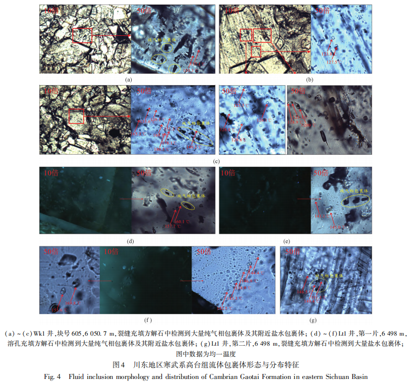 图1 川东地区寒武系高台组流体包裹体形态与分布特征