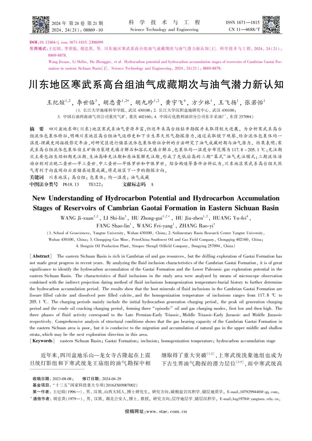 为论文第一署名单位,硕士研究生王纪煊为论文第一作者,其导师胡忠贵教授为该文通讯作者,本项研究得到“十三五”国家科技重大专项资助。