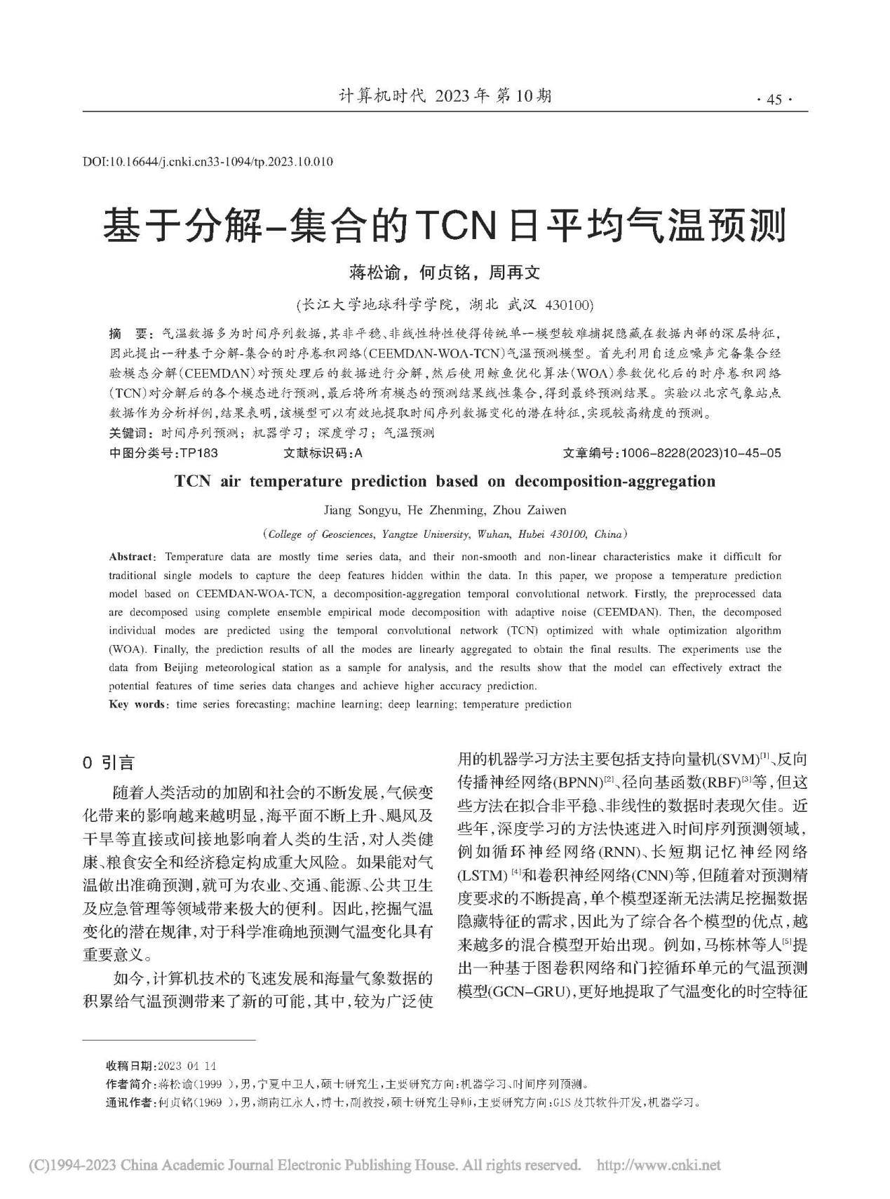 西瓜视频 何贞铭副教授团队长期从事GIS、RS应用的研究,团队成员蒋松渝在期刊《计算机时代》上发表题为“基于分解-集合的TCN日平均气温预测”的研究论文。西瓜视频 为论文第一署名单位,硕士研究生蒋松渝为论文第一作者,其导师何贞铭副教授为该文通讯作者。