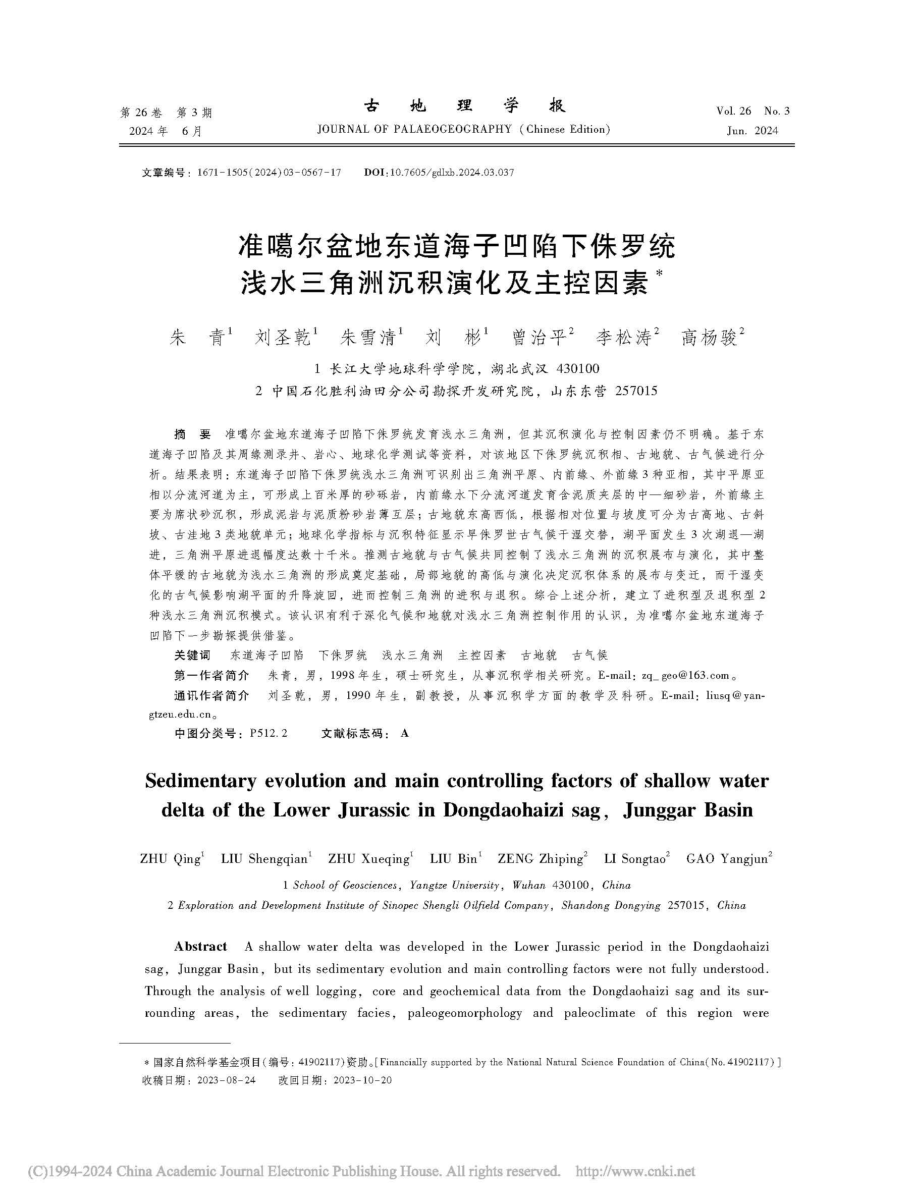 地质学专业22级硕士研究生朱青、朱雪清等在《古地理学报》上发表题为“准噶尔盆地东道海子凹陷下侏罗统浅水三角洲沉积演化及主控因素”的研究论文。西瓜视频