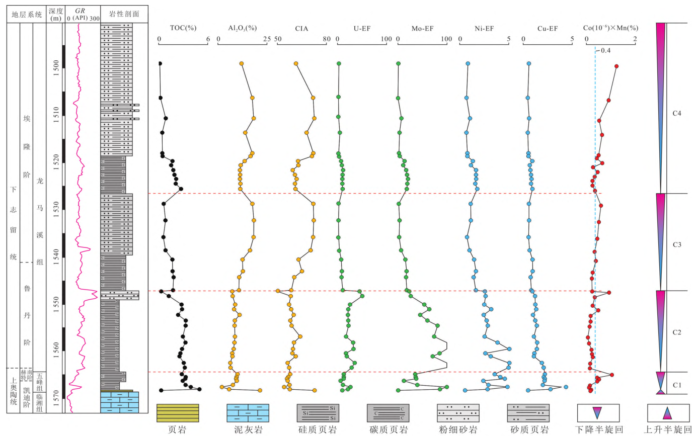 图2 TD2井五峰组-龙马溪组黑色岩系地球化学特征