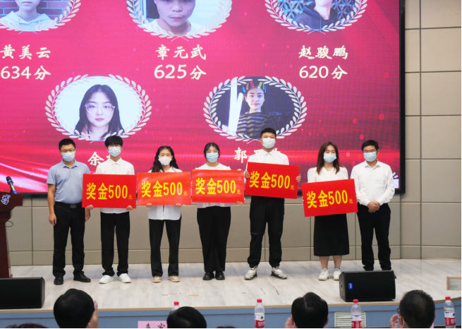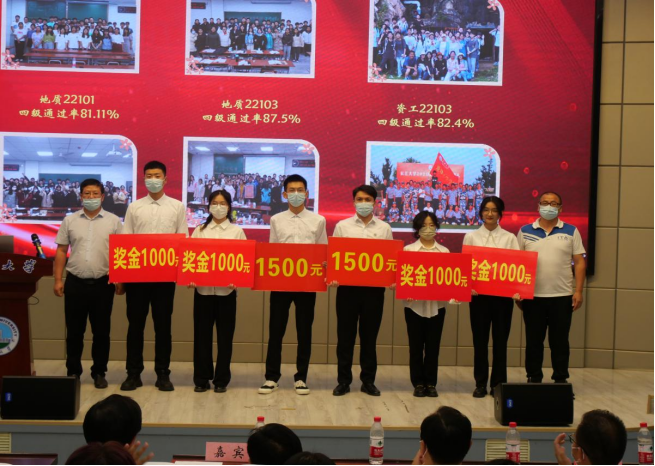 21级学子在6月份的英语四级考试中取得了一次性通过率81.6%的好成绩,6个班级过级率超过80%,5名同学超过600分。杨全辉书记宣读了表彰文件,系主任们为他们一一颁奖。取得625分好成绩的章元武同学分享他的英语学习经验。学院领导为每天陪伴21级同学进行四级备考的班导们颁发了聘书,向他们的辛勤付出致以诚挚的感谢。